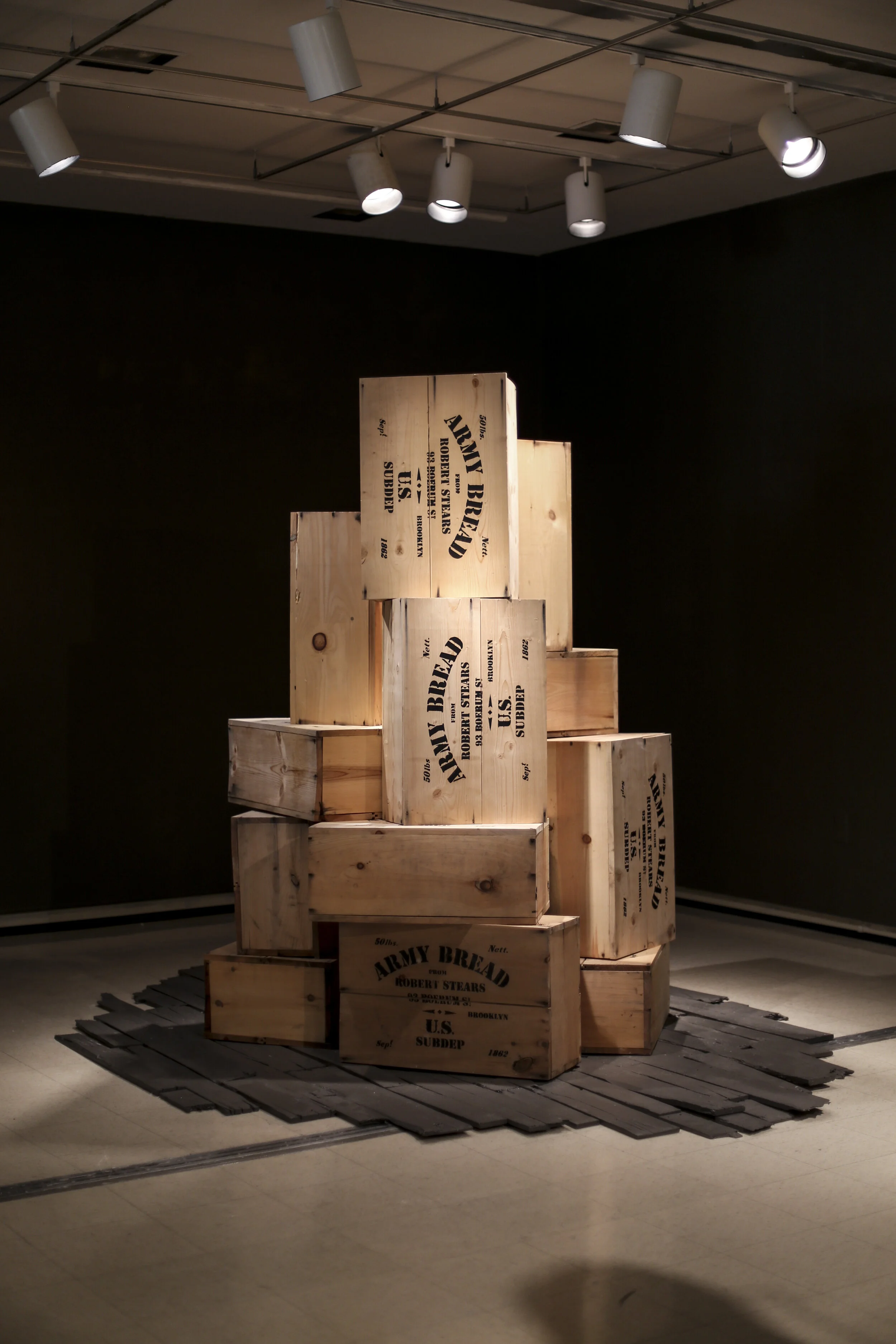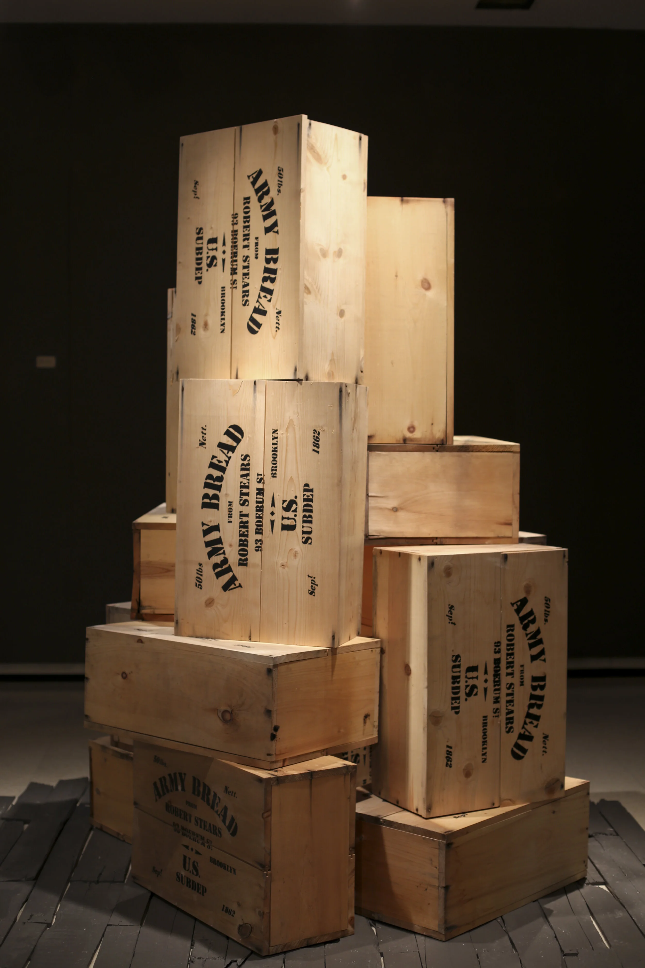 Reproduction Civil War Hardtack Crates Sculpture Concept in SketchupPine Boards, Cut Nails, Stenciled Text2013Photography by Natalie Hotaling